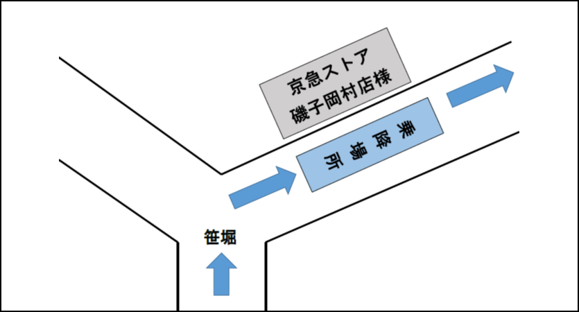※岡村方面行きのバスは乗車場所②には停車しませんので、ご注意ください。